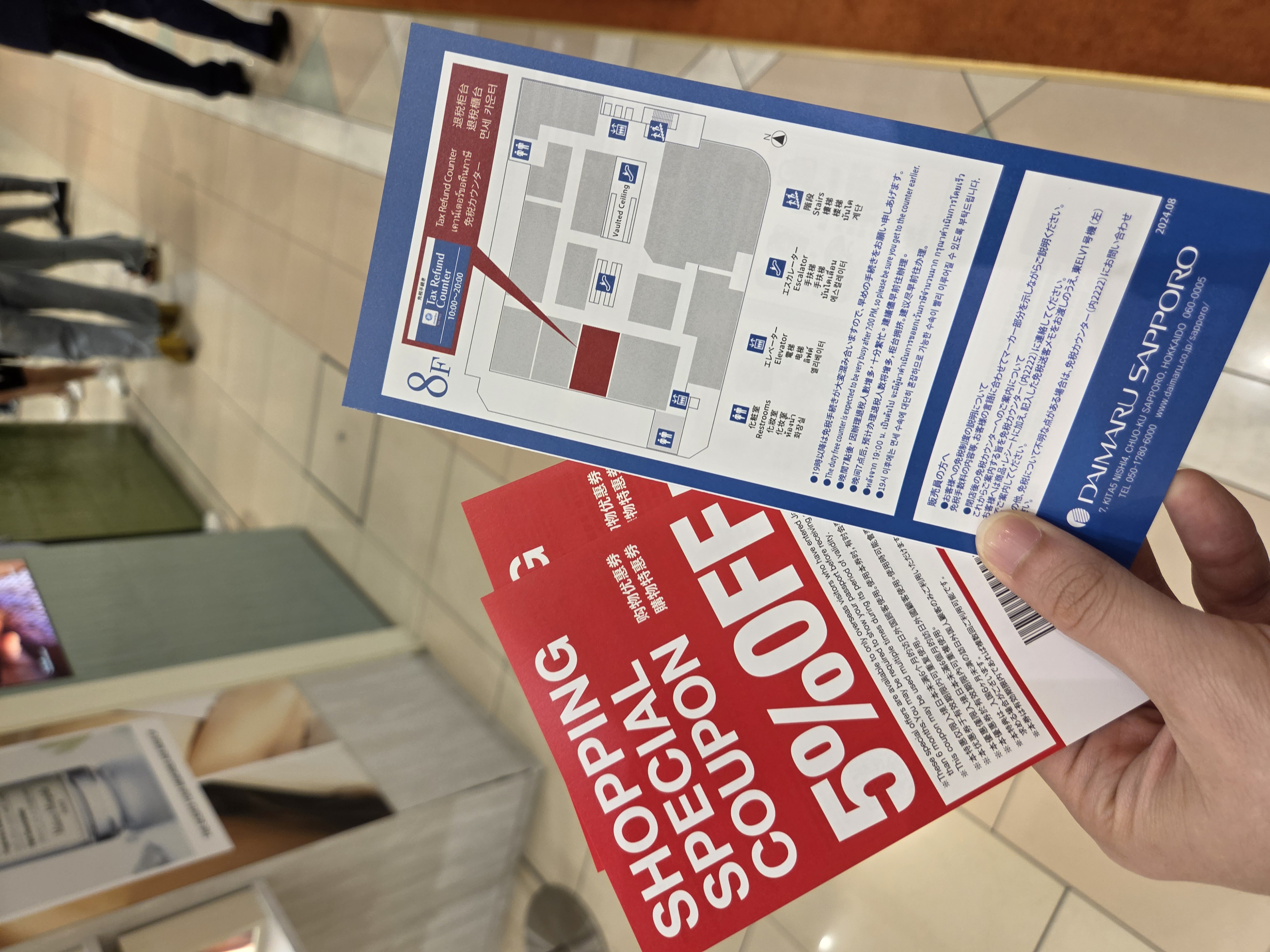그리고 삿포로에 도착해서 다이마루 백화점 1층에 방문해서 5프로 할인 쿠폰을 수령했어요!
